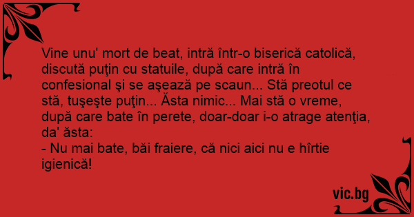 - Nu mai bate, băi fraiere, că nici aici nu e hîrtie igienică!