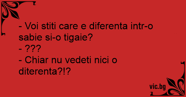 - Voi stiti care e diferenta intr-o sabie si-o tigaie?