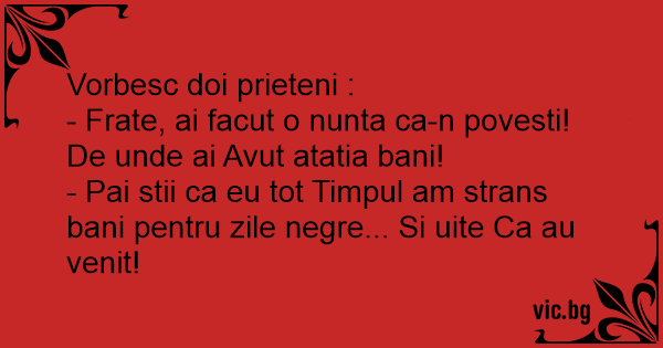 - Frate, ai facut o nunta ca-n povesti! De unde ai Avut atatia bani!