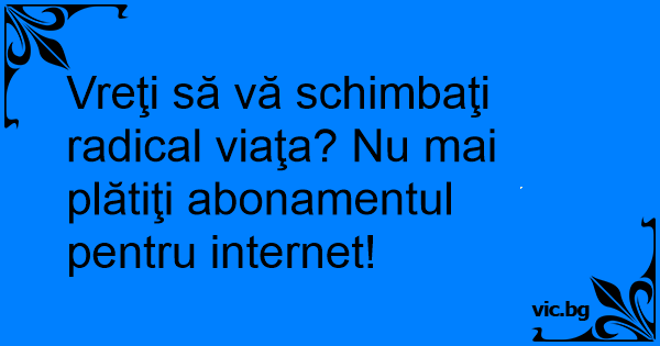 Vreţi să vă schimbaţi radical viaţa? Nu mai plătiţi abonamentul pentru internet!