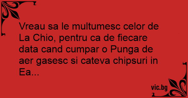 Vreau sa le multumesc celor de La Chio, pentru ca de fiecare data cand cumpar o Punga de aer gasesc si cateva chipsuri in Ea...