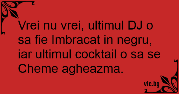 Vrei nu vrei, ultimul DJ o sa fie Imbracat in negru, iar ultimul cocktail o sa se Cheme agheazma.