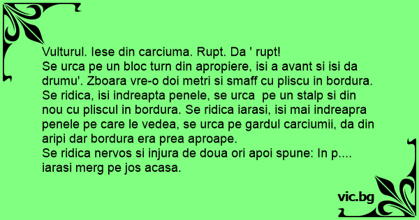 Vulturul. Iese din carciuma. Rupt. Da ' rupt!