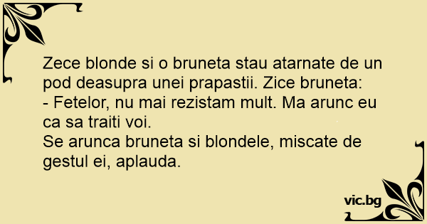 Zece blonde si o bruneta stau atarnate de un pod deasupra unei prapastii. Zice bruneta: