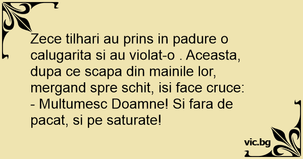Zece tilhari au prins in padure o calugarita si au violat-o . Aceasta, dupa ce scapa din mainile lor, mergand spre schit, isi face cruce: