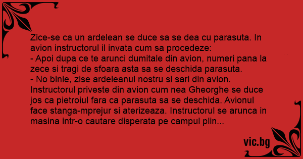 Zice-se ca un ardelean se duce sa se dea cu parasuta. In avion instructorul il invata сuм sa procedeze: