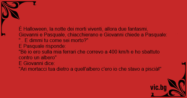 È Halloween, la notte dei morti viventi, allora due fantasmi, Giovanni e Pasquale, chiacchierano e Giovanni chiede a Pasquale: