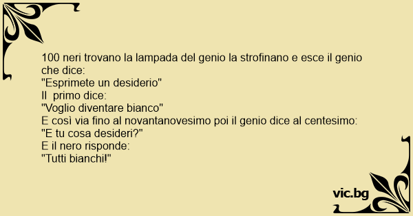 100 neri trovano la lampada del genio la strofinano e esce il genio che dice: