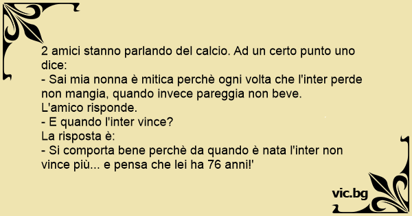 - Sai mia nonna è mitica perchè ogni volta che l'inter perde non mangia, quando invece pareggia non beve.
