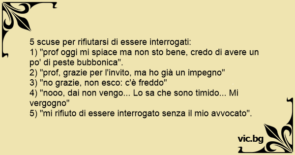 1) "prof oggi mi spiace ma non sto bene, credo di avere un po' di peste bubbonica".