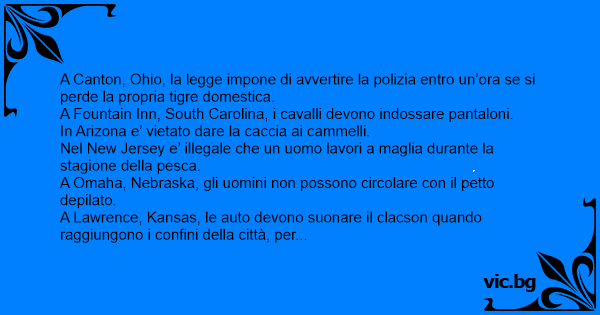A Omaha, Nebraska, gli uomini non possono circolare соn il petto depilato.