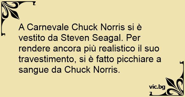 A Carnevale Chuck Norris si è vestito da Steven Seagal. Per rendere ancora più realistico il suo travestimento, si è fatto picchiare a sangue da Chuck Norris.