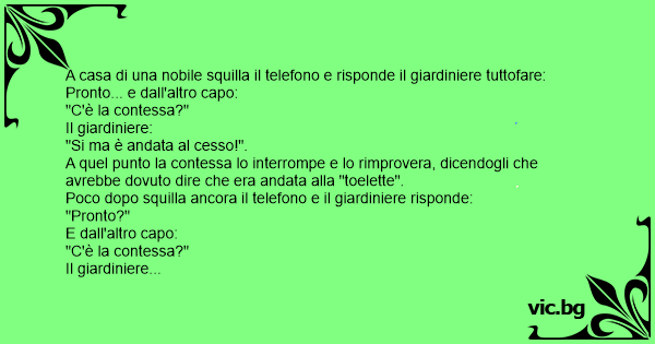 Poco dopo squilla ancora il telefono e il giardiniere risponde: