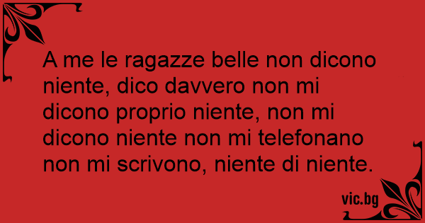 A me le ragazze belle non dicono niente, dico davvero non mi dicono proprio niente, non mi dicono niente non mi telefonano non mi scrivono, niente di niente.