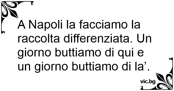 A Napoli la facciamo la raccolta differenziata. Un giorno buttiamo di qui e un giorno buttiamo di la’.
