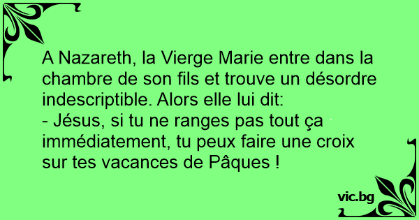 - Jésus, si tu ne ranges pas tout ça immédiatement, tu peux faire une croix sur tes vacances de Pâques !