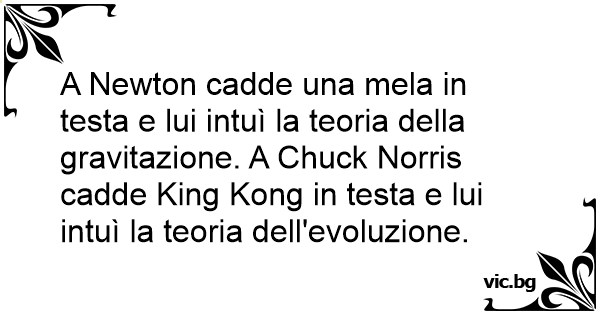 A Newton cadde una mela in testa e lui intuì la teoria della gravitazione. A Chuck Norris cadde King Kong in testa e lui intuì la teoria dell'evoluzione.