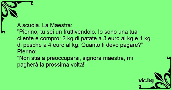"Non stia a preoccuparsi, signora maestra, mi pagherà la prossima volta!"