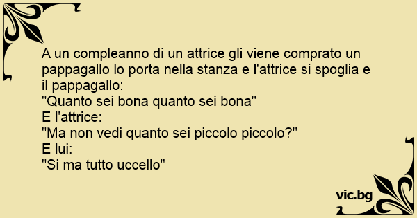 A un compleanno di un attrice gli viene comprato un pappagallo lo porta nella stanza e l'attrice si spoglia e il pappagallo: