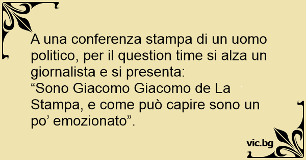A una conferenza stampa di un uomo politico, per il question time si alza un giornalista e si presenta: