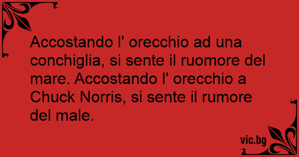 Accostando l' orecchio ad una conchiglia, si sente il ruomore del mare. Accostando l' orecchio a Chuck Norris, si sente il rumore del male.