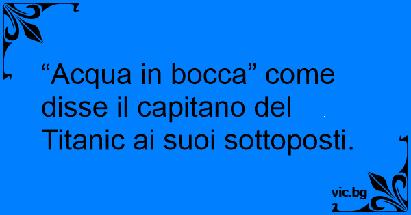 “Acqua in bocca” come disse il capitano del Titanic ai suoi sottoposti.