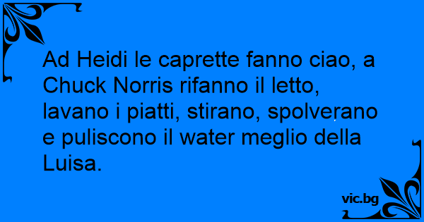 Ad Heidi le caprette fanno ciao, a Chuck Norris rifanno il letto, lavano i piatti, stirano, spolverano e puliscono il water meglio della Luisa.