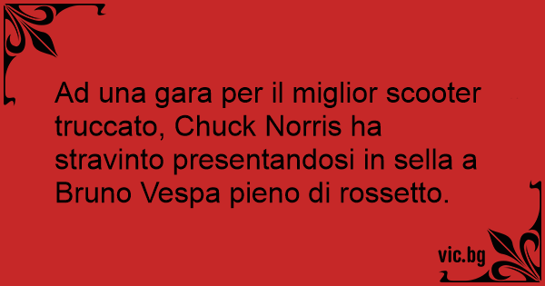 Ad una gara per il miglior scooter truccato, Chuck Norris ha stravinto presentandosi in sella a Bruno Vespa pieno di rossetto.