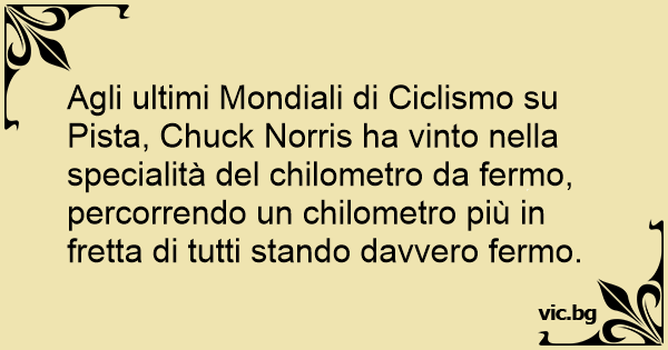 Agli ultimi Mondiali di Ciclismo su Pista, Chuck Norris ha vinto nella specialità del chilometro da fermo, percorrendo un chilometro più in fretta di tutti stando davvero fermo.