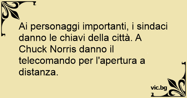 Ai personaggi importanti, i sindaci danno le chiavi della città. A Chuck Norris danno il telecomando per l'apertura a distanza.