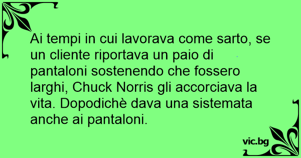 Ai tempi in cui lavorava come sarto, se un cliente riportava un paio di pantaloni sostenendo che fossero larghi, Chuck Norris gli accorciava la vita. Dopodichè dava una sistemata anche ai pantaloni.