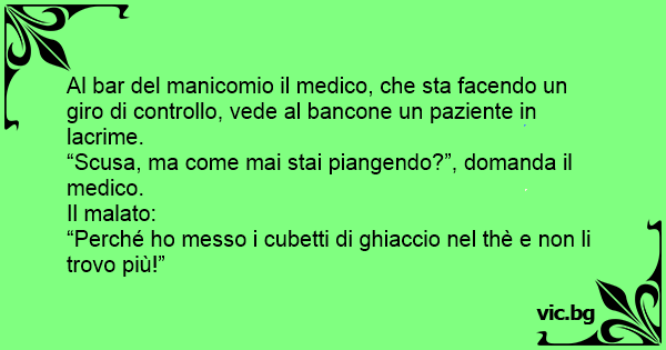 Al bar del manicomio il medico, che sta facendo un giro di controllo, vede al bancone un paziente in lacrime.