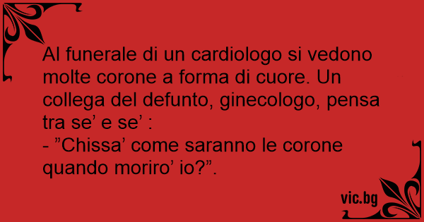 Al funerale di un cardiologo si vedono molte corone a forma di cuore. Un collega del defunto, ginecologo, pensa tra se’ e se’ :