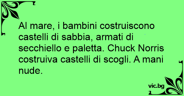 Al mare, i bambini costruiscono castelli di sabbia, armati di secchiello e paletta. Chuck Norris costruiva castelli di scogli. A mani nudе.