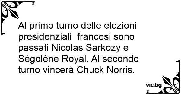Al primo turno delle elezioni presidenziali francesi sono passati Nicolas Sarkozy e Ségolène Royal. Al secondo turno vincerà Chuck Norris.