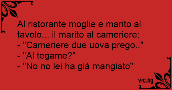 Al ristorante moglie e marito al tavolo... il marito al cameriere: