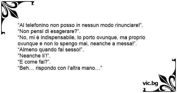 “No, mi è indispensabile, lo porto ovunque, ma proprio ovunque e non lo spengo mai, neanche a messa!”.