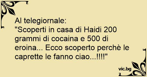 "Scoperti in casa di Haidi 200 grammi di cocaina e 500 di eroina... Ecco scoperto perchè le caprette le fanno ciao...!!!!"