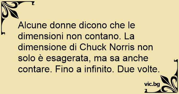 Alcune donne dicono che le dimensioni non contano. La dimensione di Chuck Norris non solo è esagerata, ma sa anche contare. Fino a infinito. Due volte.