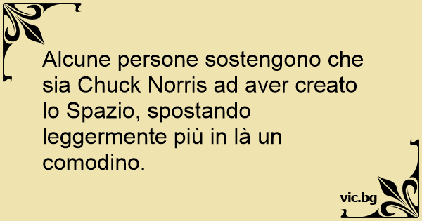 Alcune persone sostengono che sia Chuck Norris ad aver creato lo Spazio, spostando leggermente più in là un comodino.