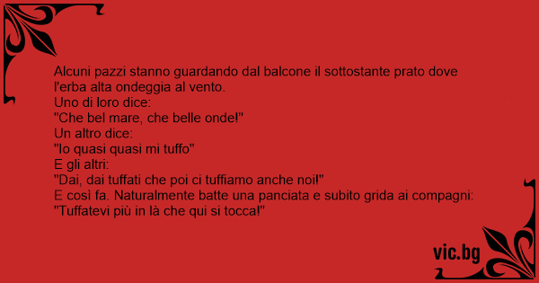 Alcuni pazzi stanno guardando dal balcone il sottostante prato dove l'erba alta ondeggia al vento.
