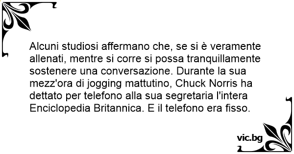 Alcuni studiosi affermano che, se si è veramente allenati, mentre si corre si possa tranquillamente sostenere una conversazione. Durante la sua mezz'ora di jogging mattutino, Chuck Norris ha dettato per telefono alla sua segretaria l'intera Enciclopedia Britannica. E il telefono era fisso.