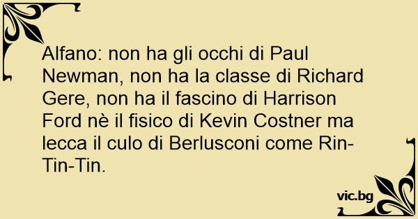 Alfano: non ha gli occhi di Paul Newman, non ha la classe di Richard Gere, non ha il fascino di Harrison Ford nè il fisico di Kevin Costner ma lecca il сulо di Berlusconi come Rin-Tin-Tin.