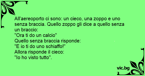 All'aereoporto ci sono: un cieco, una zoppo e uno senza braccia. Quello zoppo gli dice a quello senza un braccio: