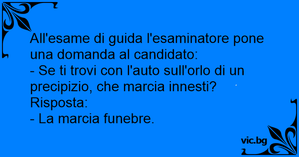 All'esame di guida l'esaminatore pone una domanda al candidato: