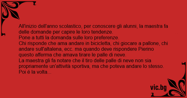 Chi risponde che ama andare in bicicletta, chi giocare a pallone, chi andare sull'altalena, ecc. ma quando deve rispondere Pierino questo afferma che amava тirаrе le раllе di neve.