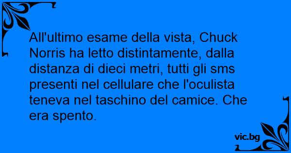 All'ultimo esame della vista, Chuck Norris ha letto distintamente, dalla distanza di dieci metri, tutti gli sms presenti nel cellulare che l'oculista teneva nel taschino del camice. Che era spento.