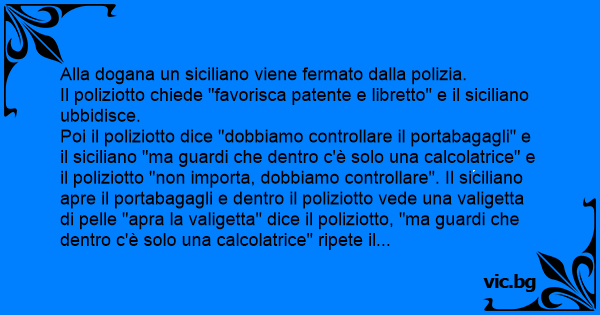 Poi il poliziotto dice "dobbiamo controllare il portabagagli" e il siciliano "ma guardi che dentro c'è solo una calcolatrice" e il poliziotto "non importa, dobbiamo controllare". Il siciliano apre il portabagagli e dentro il poliziotto vede una valigetta di pelle "apra la valigetta" dice il poliziotto, "ma guardi che dentro c'è solo una calcolatrice" ripete il siciliano "non importa, la apra!".