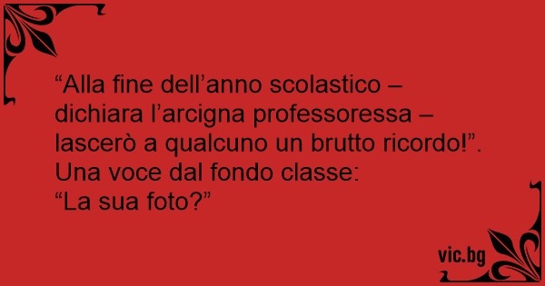 “Alla fine dell’anno scolastico – dichiara l’arcigna professoressa – lascerò a qualcuno un brutto ricordo!”. Una voce dal fondo classe: