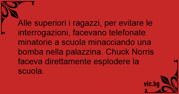 Alle superiori i ragazzi, per evitare le interrogazioni, facevano telefonate minatorie a scuola minacciando una bomba nella palazzina. Chuck Norris faceva direttamente esplodere la scuola.
